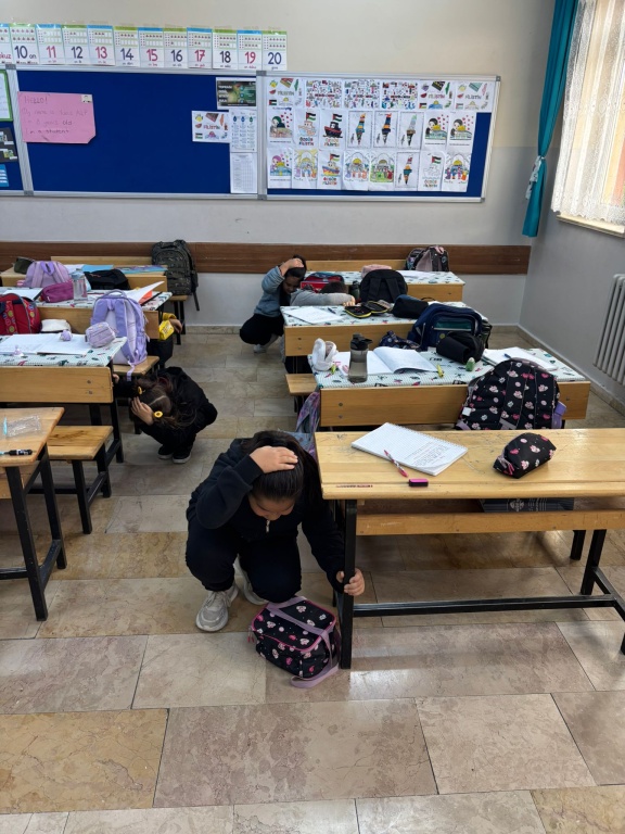 tüm ülkemizde aynı anda yapılan, tatbikatı saat 10.05 te okulumuzda da gerçekleştirdik